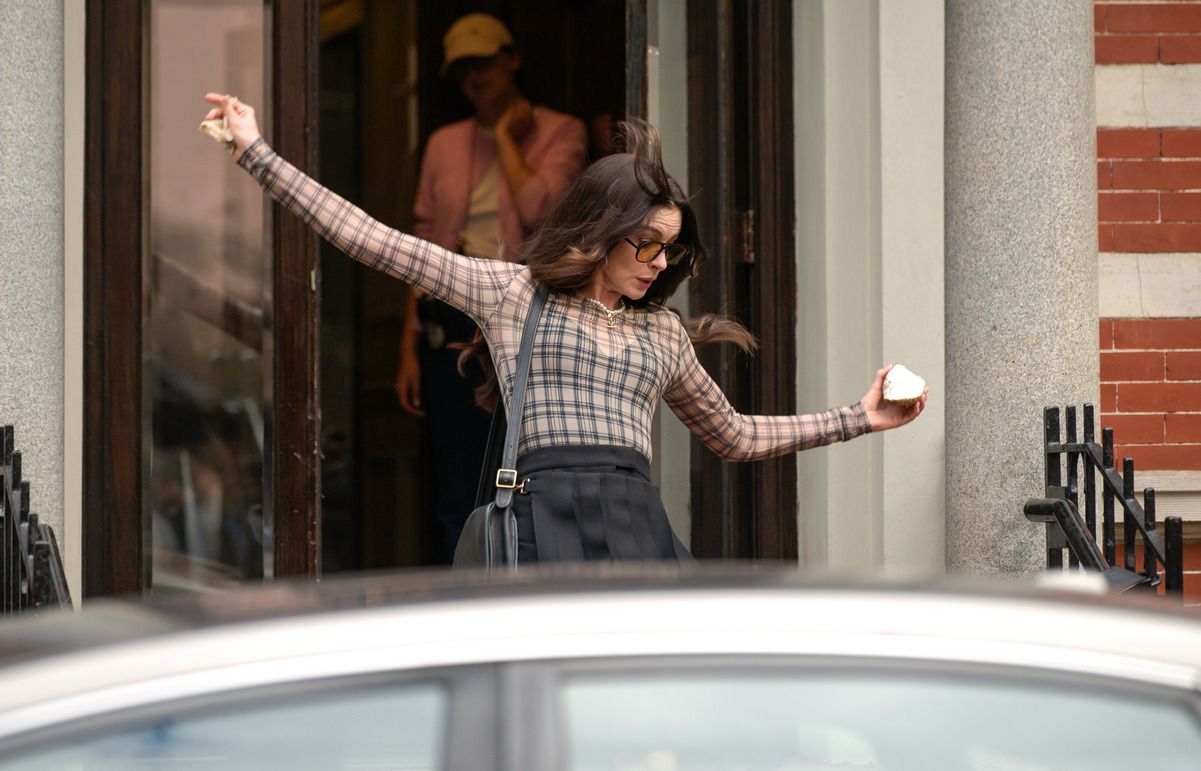Энн Хэтэуэй упала на каблуках во время съемок "Дьявол носит Prada 2" - эпические кадры