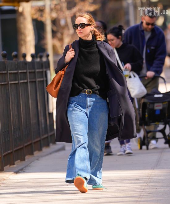 В джинсах-палаццо и стильном пальто: Дженнифер Лоуренс на прогулке в Нью-Йорке