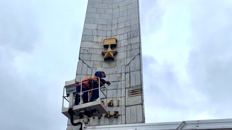 У Києві демонтують радянську зірку з обеліска на колишній площі Перемоги