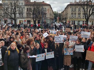 Десятки студентів 14 листопада вийшли на протест біля головного корпусу університету "Львівська політехніка" з вимогою звільнити професорку кафедри