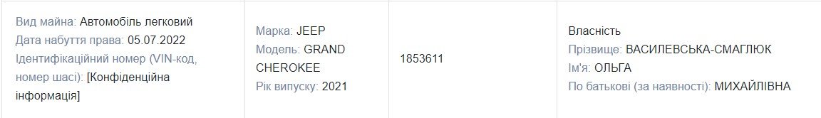 “Слуга” Василевская-Смаглюк во время войны приобрела авто почти за 2 млн гривен