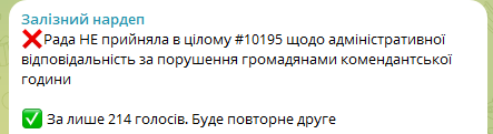 Рада не поддержала законопроект о штрафах за нарушение комендантского часа: что известно