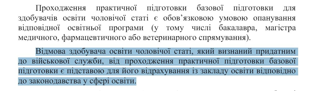 В Украине будут отчислять студентов-мужчин, если они будут отказываться от прохождения общевойсковой подготовки. Эта норма касается тех, кто был