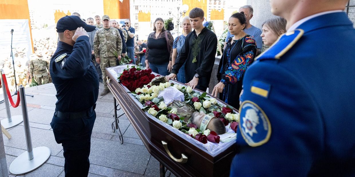 Прощание с командиром Объединенной штурмовой бригады Национальной полицииУкраины "Ярость" полковником полиции Максимом Казбаном состоялось сегодня