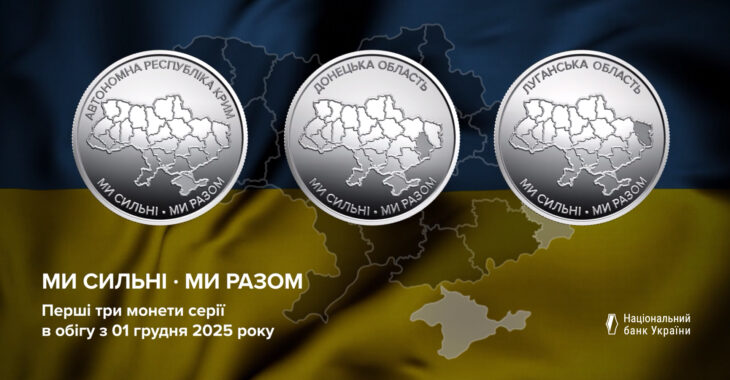 Національний банк України запустив нову серію обігових пам’ятних монет номіналом 10 гривень під назвою «Ми сильні. Ми разом», де на реверсі замість