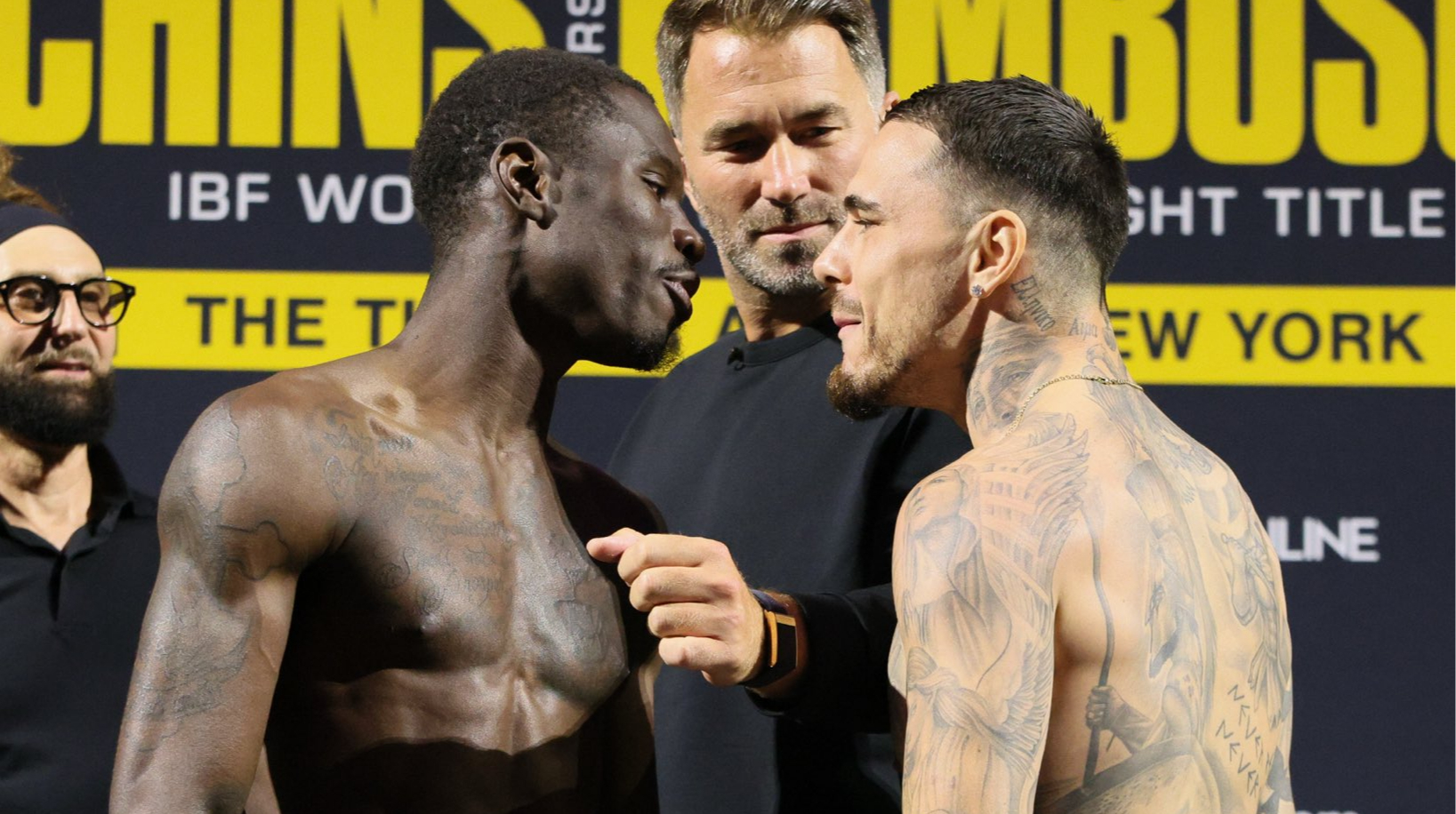 Бывший чемпион мира в легком весе австралиец Джордж Камбосос (22-4, 10 КО) и обладатель пояса IBF в первом полусреднем весе Ричардсон Хитчинс (20-0,