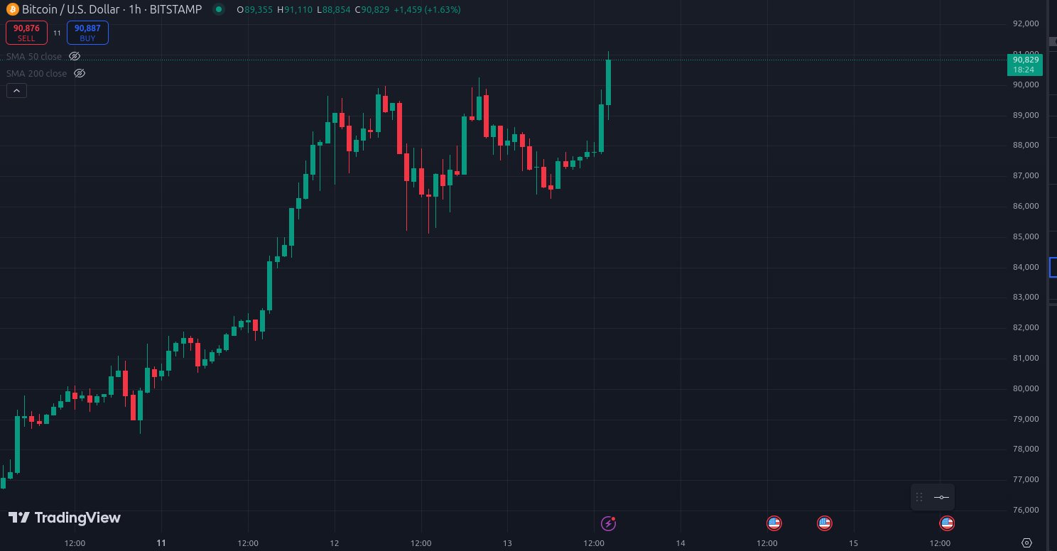 Биткоин пробил уровень сопротивления $ 90 тысяч сразу на открытии фондового рынка в США 13 ноября. Положительный импульс начался после публикации