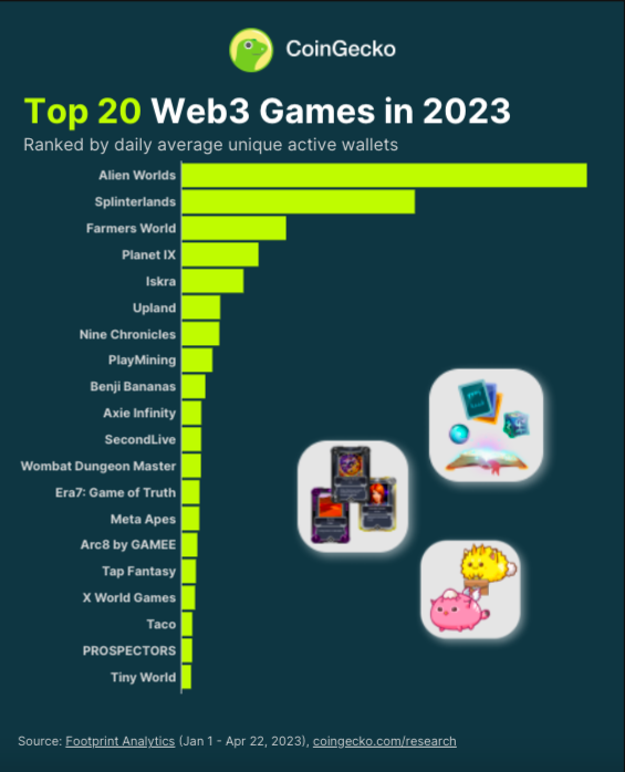 На 2023 год Alien Worlds и Splinterlands являются самыми популярными Web3-играми, с каждой из которых ежедневно взаимодействуют более 130 000