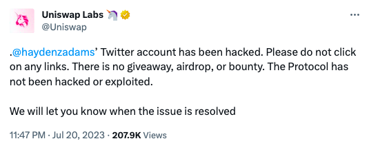 Хакеры взломали Twitter-аккаунт создателя Uniswap