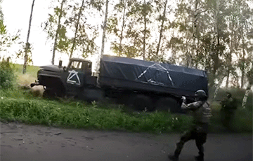 Видеофакт. Российский «Урал» попал в засаду, организованную чеченскими добровольцами, которые сражаются на стороне Украины. Видео опубликовало