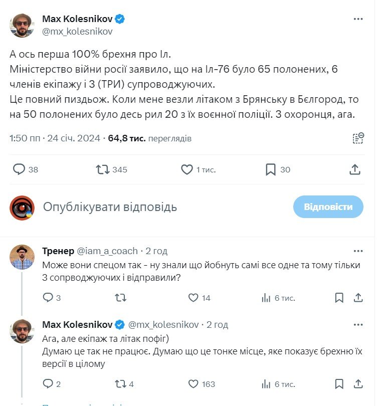 Послепадения под Белгородом российского военного самолета ИЛ-76, пропагандисты рф сразу заявили о том, что его сбили ВСУ. Более того - якобы там