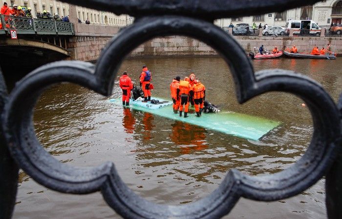В Петербурге в результате падения автобуса в реку погибли три пассажира