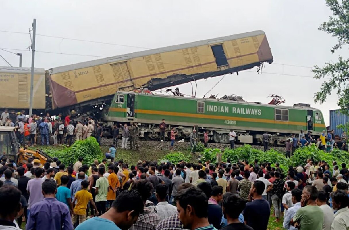 В Индии 17 июня столкнулись грузовой и скоростной поезда. От силы удара вагон на несколько метров завис в воздухе - в результате столкновения