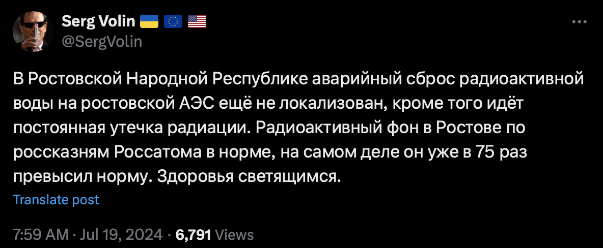 В пятницу в соцсетях появились сообщения о том, что в России произошла ядерная катастрофа. В частности, утверждается, что на Ростовской АЭС произошел