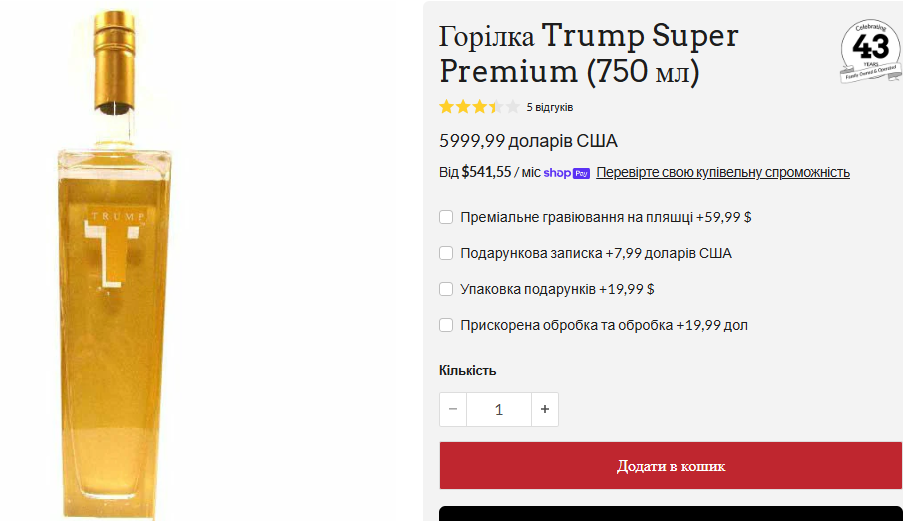 Новоизбранный президент США, американский предприниматель Дональд Трамп расширил свой бизнес, запустив линейку премиальной водки Trump Super Premium.