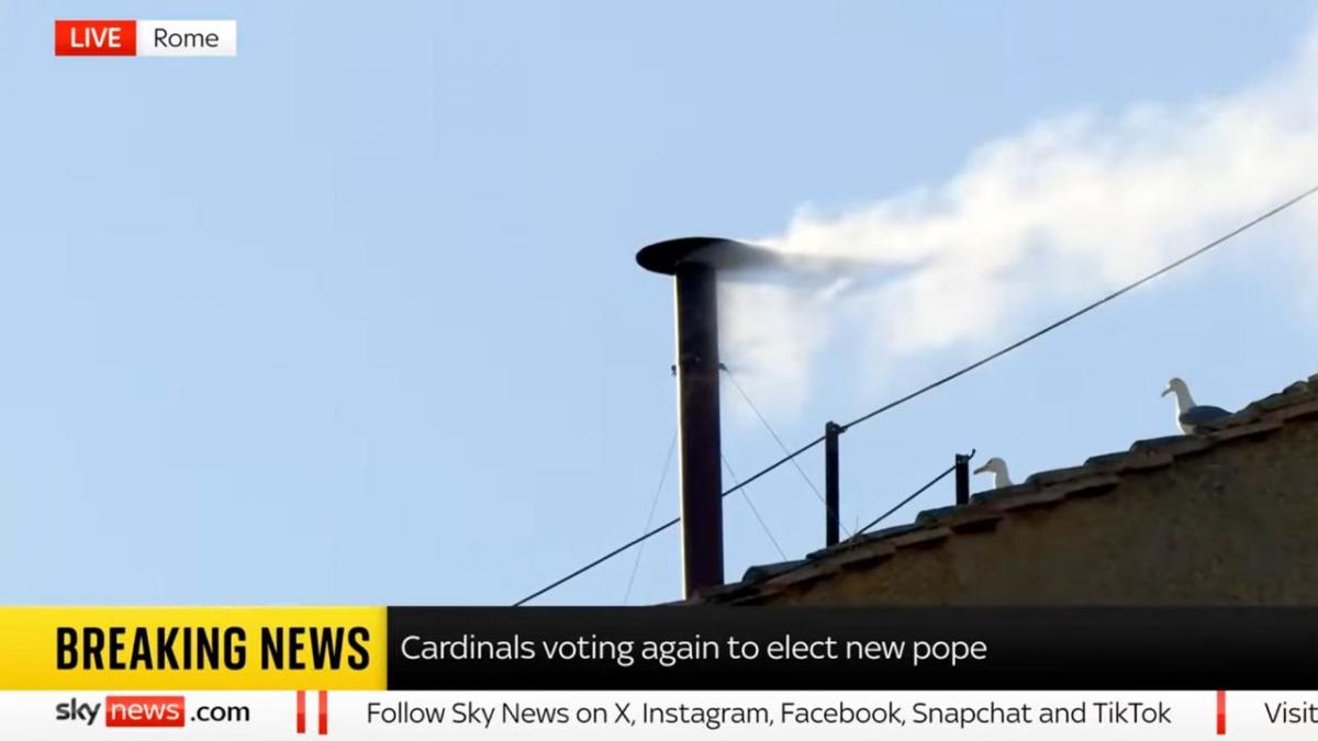 / скриншотКонклав в Ватикане избрал нового Папу Римского - из трубы на крыше Сикстинской капеллы идет белый дым. Белый дым означает, что новый папа