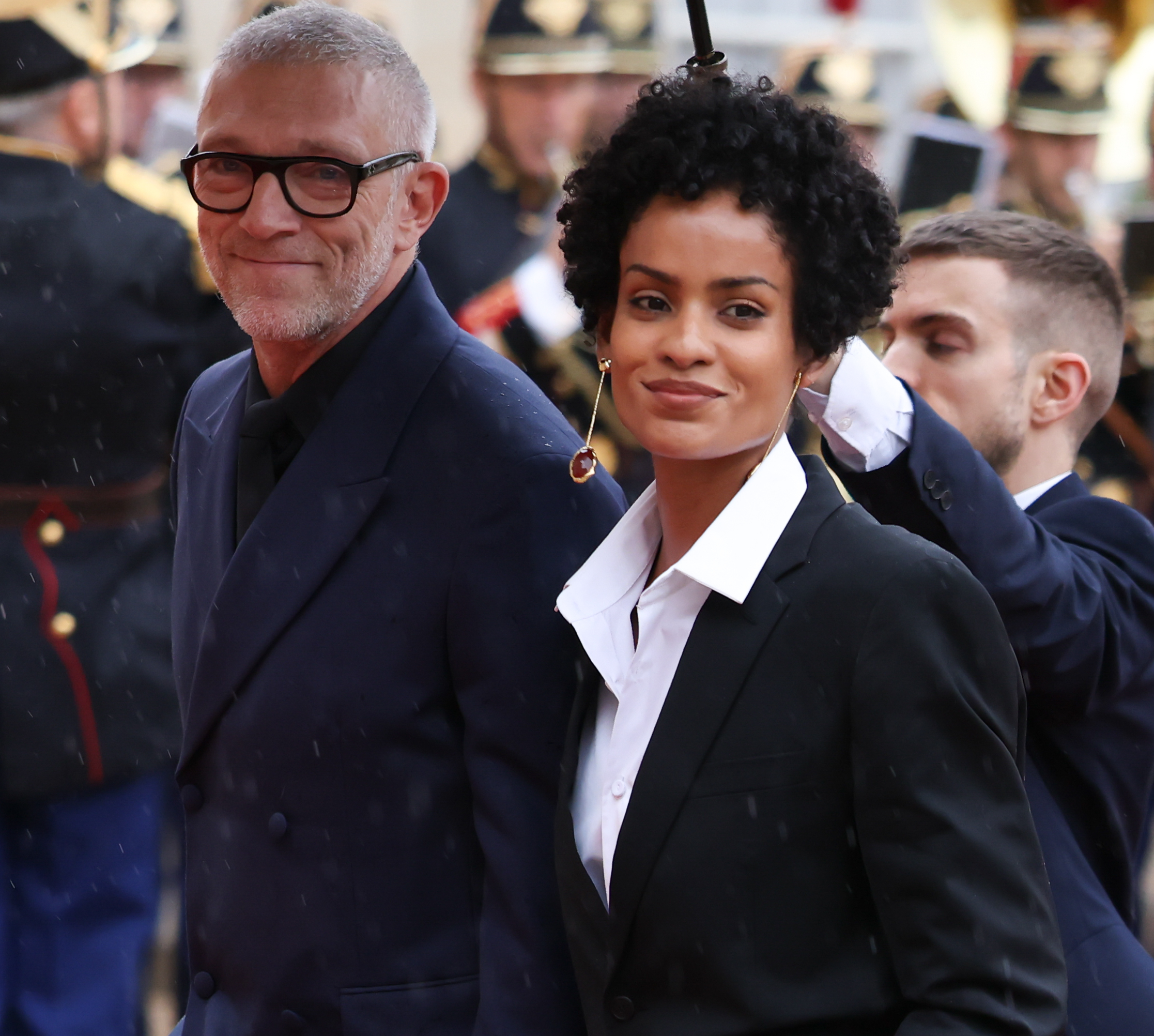 Звана вечеря у Парижі: дружина Макрона вигуляла сукню зі срібною вишивкою, а кохана Касселя пройшлася хідником у маскулінному образі