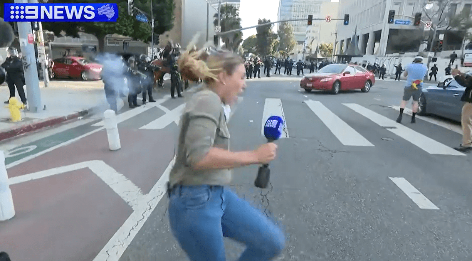 Австралійську журналістку Лорен Томасі поранили гумовою кулею під час прямого включення з протестів у Лос-Анджелесі. Про це повідомляє телеканал
