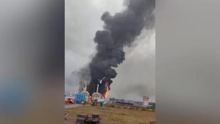 В порту Усть-Луга на терминале компании «Новатэк», занимающейся добычей и переработкой природного газа, вспыхнул пожар после падения обломков