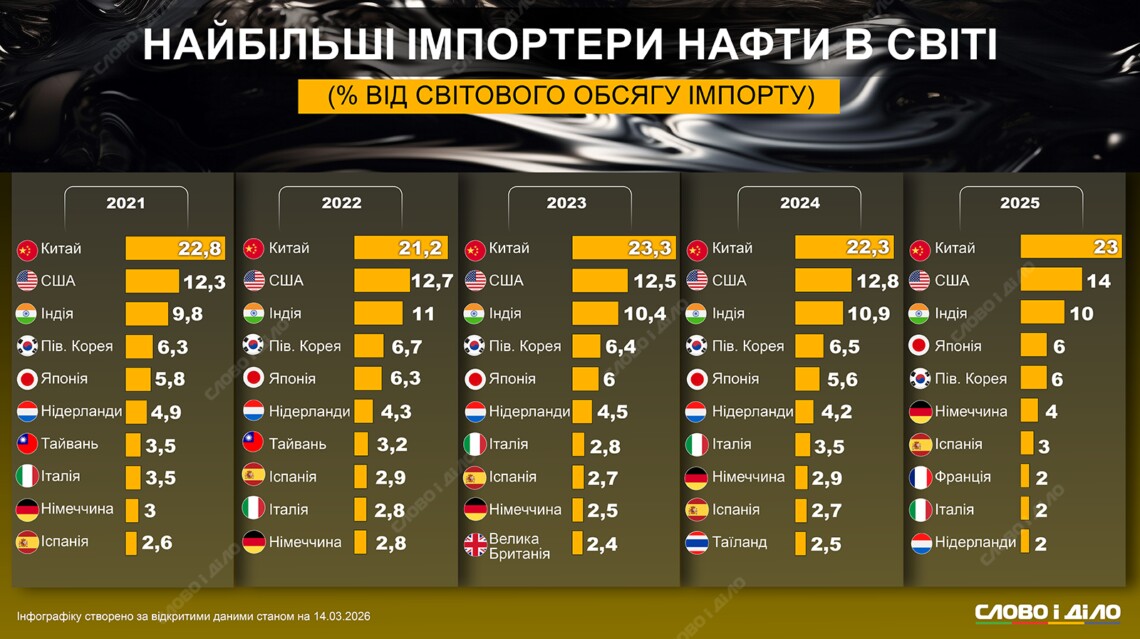 Найбільші у світі імпортери нафти: як розподіляється обсяг закупівель між країнами — інфографіка