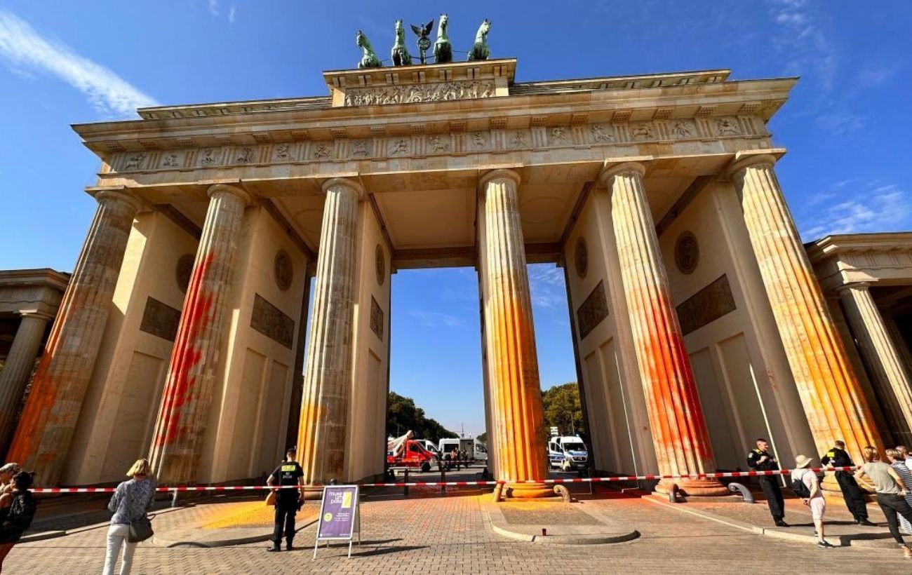 Екоактивісти руху “Останнє покоління” облили фарбою Бранденбурзькі ворота у Берліні. Таким чином вони висловили протест проти політики німецької