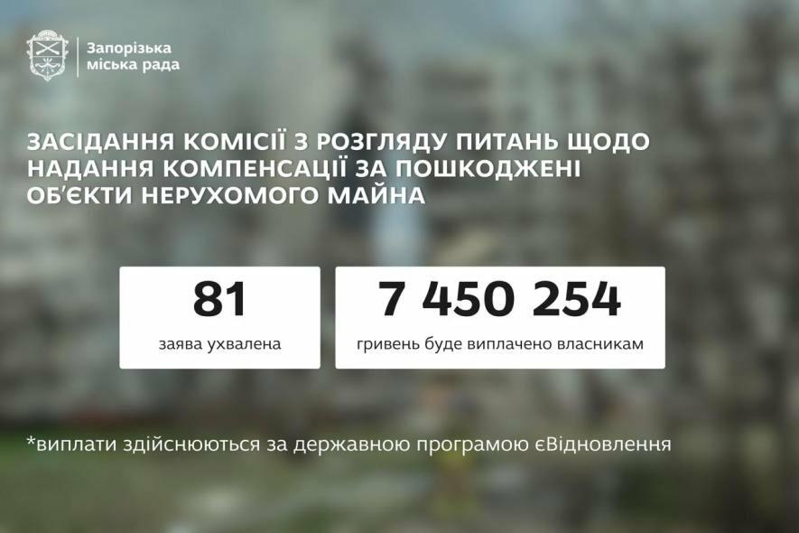 У Запоріжжі погодили отримання компенсації на ремонт пошкодженого житла за ще 81 заявкою