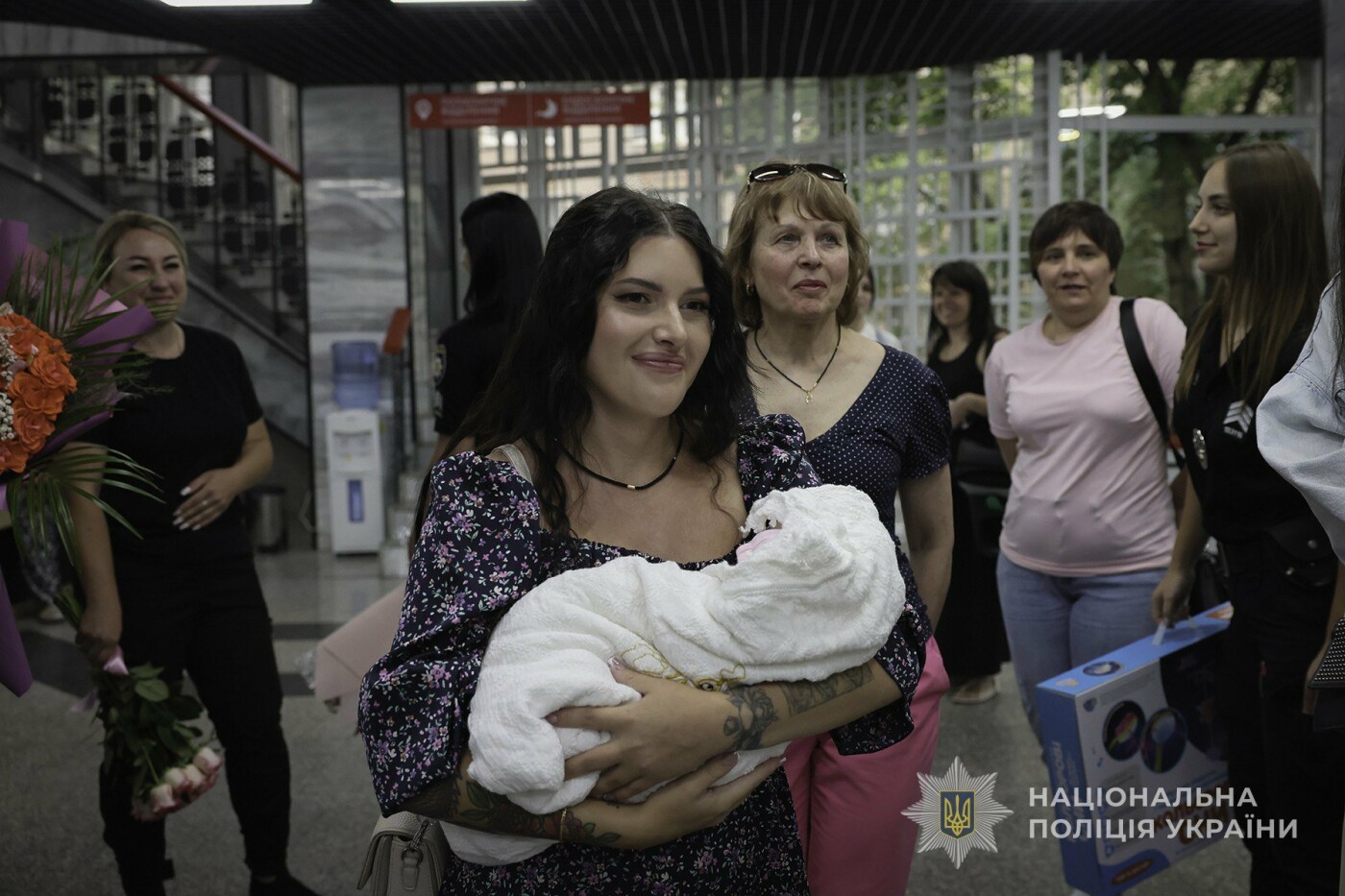 Поліцейські Запорізької області зустріли з пологового будинку Єлизавету Дергільову - дружину колеги-вибухотехніка Іллі Дергільова, який загинув під