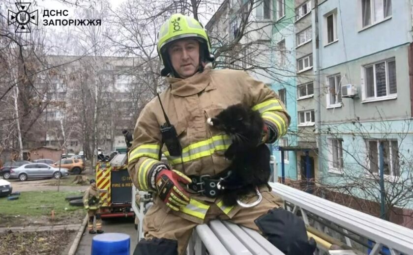 Надзвичайники Запоріжжя врятували котика, який заліз на високе дерево