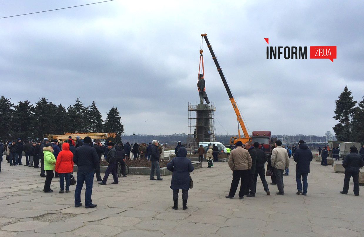 17 марта 2016 года в Запорожье демонтировали памятник Владимиру Ленину на Запорожской площади. Работы длились около полутора суток. Inform.zp.ua